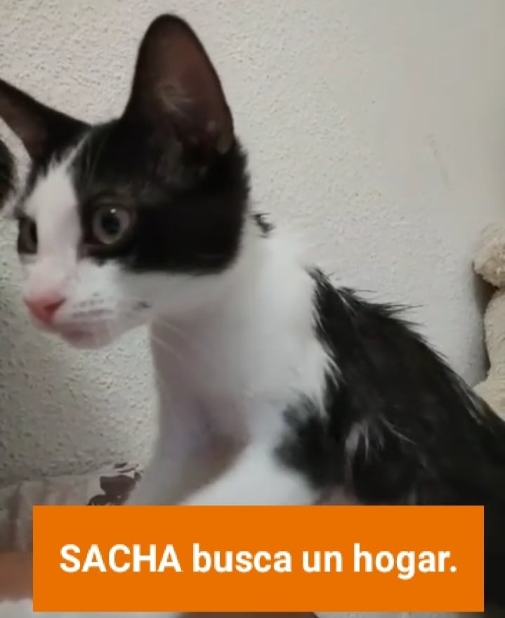 Sacha, es un gato de 1 año, muy hablador y espabilado, y sobre todo muy muy juguetón, todo para él es un juguete, y jugar es su única preocupación. Es un gato sociable y mimoso, que está buscando una familia que le quiera mucho.